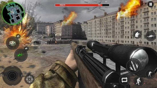 2、场景也是非常逼真的,模拟了很多真实的城市场景。开发团队参考了大量二战历史资料,完美还原了斯大林格勒、诺曼底等著名战场。场景中的可破坏元素增加了战术多样性,玩家可以射击油桶制造爆炸,或打碎玻璃制造声响吸引敌人。