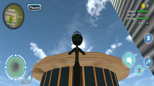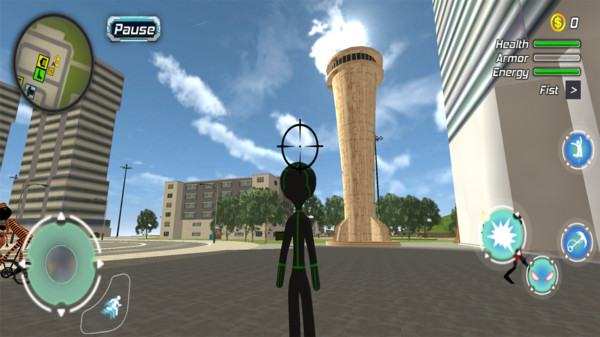 4、以现代化大作为游戏背景,而你是一位拥有超能力的超音速火柴人。游戏世界设定在一个充满未来感的现代都市,高楼林立,车水马龙。玩家可以利用超能力在城市中快速移动,甚至进行高空跳跃和墙壁奔跑。