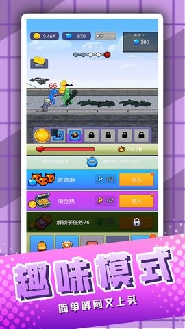一冲飞天火柴人手机版是一款永无休止的现代射击格斗游戏。玩家在游戏中控制火柴人躲避敌人的射击,直到击败对手。玩家不仅可以提升自己的技能,还可以选择多种炫酷枪械,解锁火柴人皮肤品种,等级越高,角度也会越奇异,考验玩家技能的时候到了。