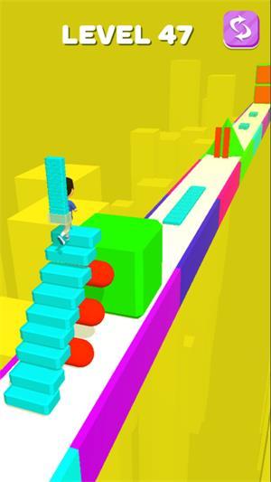 3、楼梯主管必须先收集足够的砖块来楼梯,然后才能通过高处的障碍物;独特的楼梯搭建机制让游戏策略性大大提升,玩家需要合理规划砖块使用,在最关键时刻搭建楼梯。