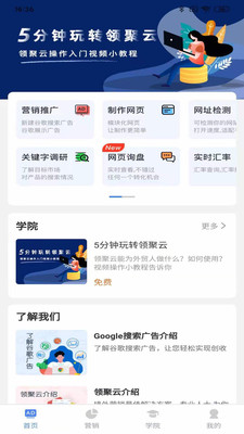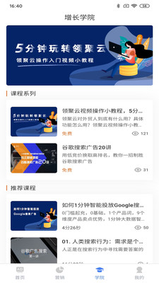领聚云高校版APP是一款专为高校学生打造的数字化学习平台,致力于提供全方位的营销知识学习体验。平台汇聚了海量优质课程资源,涵盖营销推广、网页制作、网址检测、实时汇率、网页询盘等多个领域,满足不同学习需求。通过这款APP,用户可以随时随地学习最新的营销知识,轻松掌握专业技能。无论是初学者还是进阶者,都能在这里找到适合自己的学习内容,让数字化营销学习变得更加高效便捷。