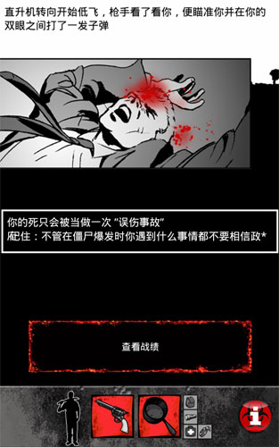 《疫区(ZDAY)》最令人印象深刻的是其独特的美学风格。黑白红三色的运用不仅营造出强烈的视觉冲击,更完美地传达了末日世界的绝望氛围。游戏中的音效设计也相当出色,僵尸的低吼、枪声的回响、物品碰撞的声音都极具临场感。游戏难度设置合理,初期可能会觉得挑战性过高,但随着对游戏机制的熟悉,玩家会逐渐掌握生存技巧。不过需要注意的是,游戏确实会给人带来较强的心理压力,特别是当看到角色因为自己的错误决定而惨死时。这种强烈的代入感既是游戏的优点,也可能让部分玩家感到不适。