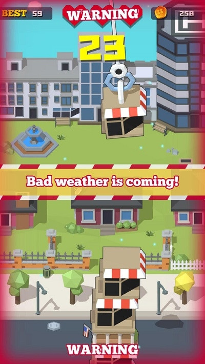3、独特的物理引擎让楼层放置充满变数,稍有不慎就会导致建筑倾斜倒塌,这种紧张刺激的体验是游戏的最大特色。