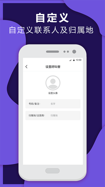 4.模拟来电的素材非常丰富,自由的进行来电设置。素材库包含200+不同场景的来电铃声,50+预设联系人头像,支持用户上传自定义联系人照片和专属铃声,还能设置多段式来电(如第一次未接听后的二次来电),打造完全个性化的救急方案。