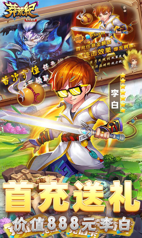3、首次冲锋后赠送价值888元的超高连击刺客李白。培训永远不会过时,这位强力英雄将成为你战斗中的得力助手,助你在莽荒世界中所向披靡。