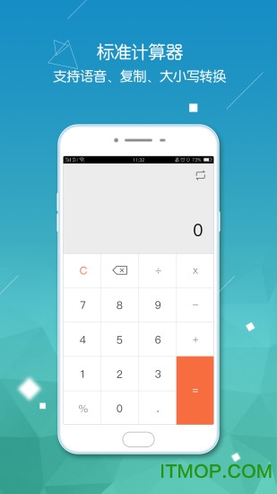 1)提供基础的加减乘除运算功能,界面简洁明了,操作比手机自带计算器更加便捷高效