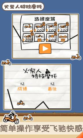 1、火柴人感觉骑摩托车也是一个不错的选择,于是说练就练,经过一段时间的练习,他的技术已经非常的牛X啦,现在都能表演特技啦,那就来瞧瞧他到底怎么样呢。2、幸好有辆摩托车让他自己骑着逃跑啦,之后他感觉自己还真幸运,那还是自己第一次骑摩托,就救了自己一次命。3、当火柴人着自己的摩托,飞翔在空中时,会做出很多特技,简直帅呆了!要不你也来试一下?快来和火柴人一起感受飞车的快感吧!此外,游戏还加入了丰富的成就系统,玩家可以通过完成特定任务获得奖励,进一步提升游戏的可玩性。无论是单人挑战还是与朋友比拼,都能让玩家体验到不一样的乐趣。