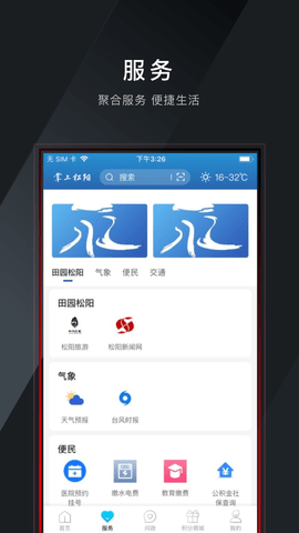 1、掌上松阳提供政务信息发布和政务事务办理功能,方便用户随时了解政策动态和办理相关事务。