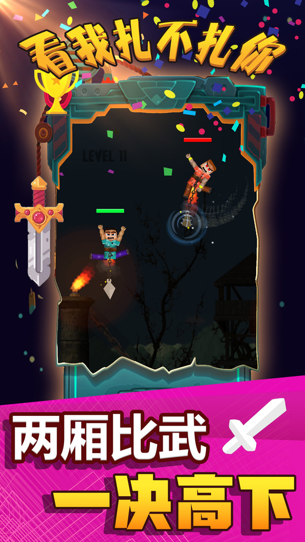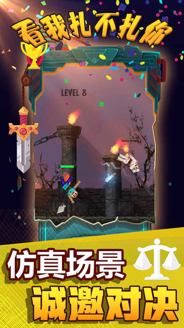 《看我扎不扎你》是一款模拟切磋武艺的对抗类游戏,玩家将在游戏中体验到真实的武侠对决。游戏设置了多种仿真场景和剧情,玩家需要根据提示选择合适的武器,并主动进行攻击。通过将武器抡圆,依靠惯性扩大伤害范围和力度,玩家可以在战斗中占据优势。游戏不仅提供了丰富的武器选择,还设计了多种战斗模式,让玩家能够尽情施展自己的武艺。无论是单人挑战还是多人对战,都能让玩家感受到紧张刺激的战斗氛围。
