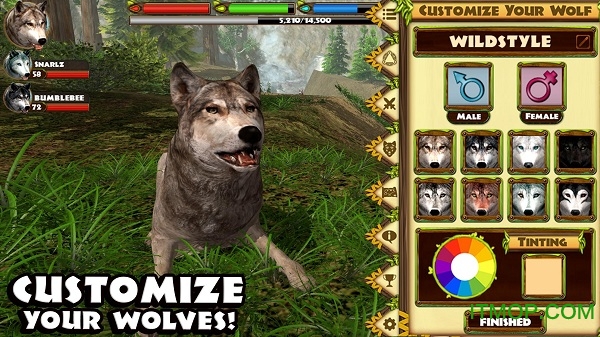 丰富的自定义选项包括毛色、体型、花纹等外观元素,玩家可以打造独一无二的专属野狼。