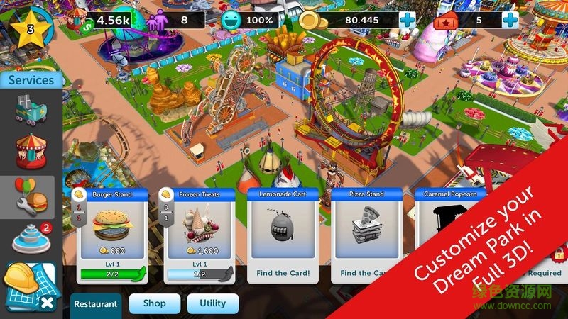 2.用各种景点、餐馆、业务、商铺摊位、旅馆及装饰来定制你的主题公园,打造独一无二的游乐园体验