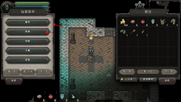 6、点击背包图标可以打开详细的功能菜单,这里整合了装备、技能、任务、地图等所有游戏系统,方便玩家随时调整角色状态和查看游戏进度。