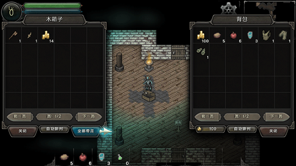 5、开启宝箱后会显示获得的战利品清单,包括各种装备、材料和消耗品。玩家可以逐一查看物品属性,选择性地将需要的物品转移到自己的背包中。