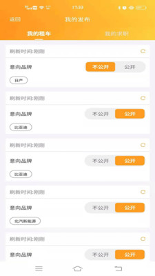 2、司机端可以发布租车需求或求职需求,公司端首页会展示司机端发布的租车需求和求职需求,以及公司端发布的卖车和求购信息,实现供需双方的精准匹配。