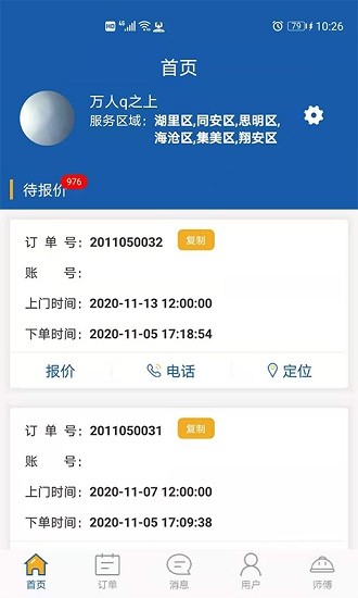 查看订单的信息,实时掌握订单的处理状态,帮助师傅快速响应并完成服务,提升用户满意度;