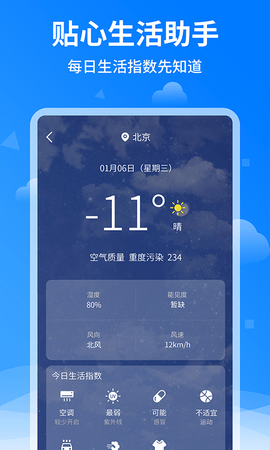 4、【实时天气信息】实时获取您当前所在位置的天气预报和空气质量污染指数,采用精准定位技术,确保用户获取的天气信息与所在位置完全匹配;