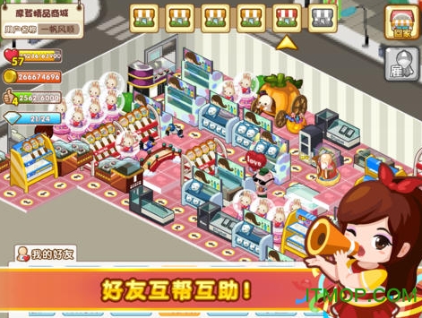 5. 完善的社交系统让玩家可以访问好友店铺,进行互动比拼。通过清理垃圾、收集财运等方式互相帮助,还能雇佣好友员工来提升店铺实力。