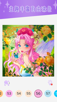 2、采用治愈系画风设计,每个公主角色都拥有精致可爱的五官和生动的表情,搭配梦幻的背景场景,让玩家在涂色过程中获得愉悦的视觉享受;