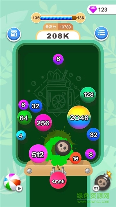 1.游戏采用创新的球球消除机制,玩家需要通过精准的滑动操作将相同数字的球球合并,每次成功合成都能获得相应积分奖励;