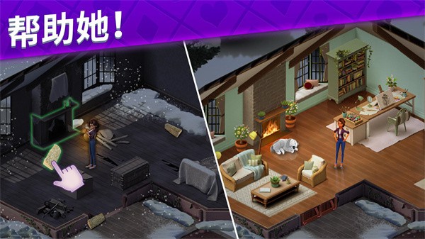 5、结识各具特色的朋友角色,包括时尚闺蜜Serena和忠诚的狗狗伙伴Marlowe,他们都会帮助玩家改造庄园。