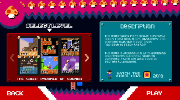 2、关卡选择界面设计直观友好,通过点击左右箭头可以浏览所有可用关卡,每个关卡都有独特的预览图,帮助玩家做出选择。
