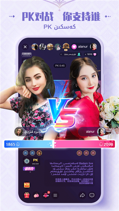 BadamLive直播App,又称巴旦木直播平台,是一款专为新疆明星和才艺达人打造的直播平台。它不仅汇聚了聚会、颜值、脱口秀、搞笑等多种直播类型,还支持维吾尔语和中文双语切换,让用户能够深入体验独特的异域文化风情。平台通过丰富的直播内容和互动形式,为用户带来全新的娱乐体验。无论是欣赏明星表演,还是参与普通人的才艺展示,BadamLive都能满足你的需求。此外,平台还会不定期举办歌唱、舞蹈、茶话会等精彩活动,用户可以与主播实时互动,感受直播的乐趣。如果你对才艺展示感兴趣,只需在首页点击官方节目,即可查看详细的直播时间,不错过任何精彩瞬间。
