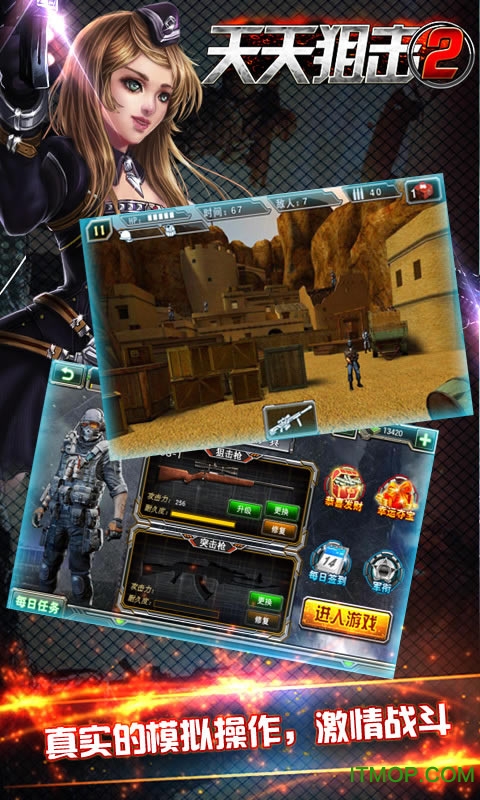 天天狙击2是一款令人热血沸腾的第一人称射击手游,它将带你进入一个硝烟弥漫的战场世界。游戏采用次世代引擎打造,呈现出令人惊叹的3D视觉效果,从枪械金属光泽到爆炸火焰粒子都栩栩如生。玩家可以体验多种刺激的作战模式,包括团队竞技、爆破任务以及全新的生化求生模式。精心设计的战场地图涵盖都市巷战、沙漠要塞等多样化场景,配合动态天气系统让每场战斗都充满变数。无论是狙击枪的精准爆头还是机枪的疯狂扫射,都能带来无与伦比的射击快感。