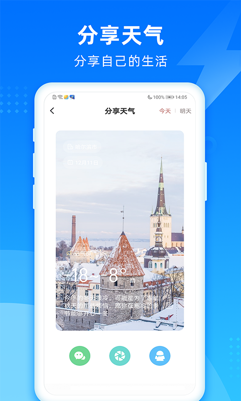 天气播报:支持语音播报当前天气状况和预报信息,解放双眼的同时获取天气资讯,特别适合驾驶、晨练等不方便查看手机的场景使用。