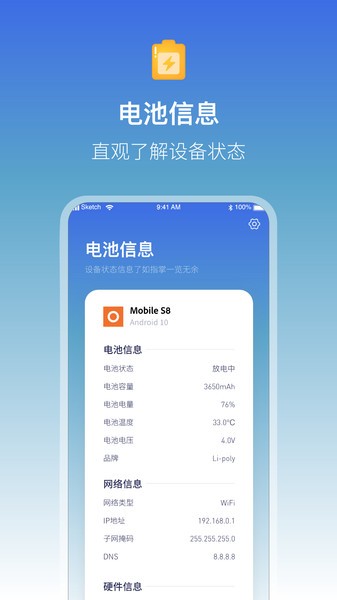 - 实时监控电池健康状态,提供详细的电量、电压、温度等专业数据,帮助用户全面了解设备状况,延长电池使用寿命。