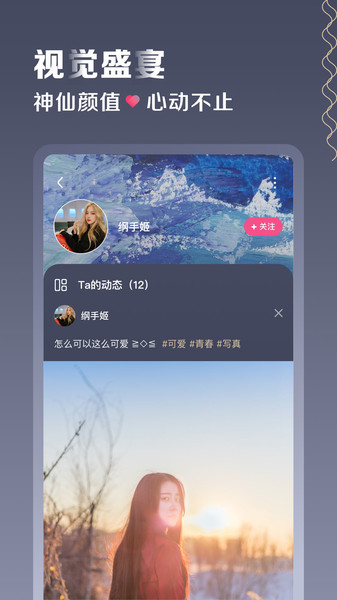 1、线上就能浏览到海量美图,实时获取美图的各类专题,满足不同用户的审美需求。2、极速阅览到精选图片,迅速就能浏览到优质美图,提升用户体验。3、挑选图片资源后,线上就能进行图片展示和陈列,方便用户欣赏和分享。4、一键关注发布作品的用户,能够获取用户最新动态,保持互动。5、动态展示和陈列,用户可以阅览到所有的动态内容,了解最新资讯。6、这里有视频可以观看,挑选视频后就能迅速观看到视频,丰富娱乐体验。