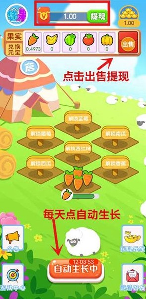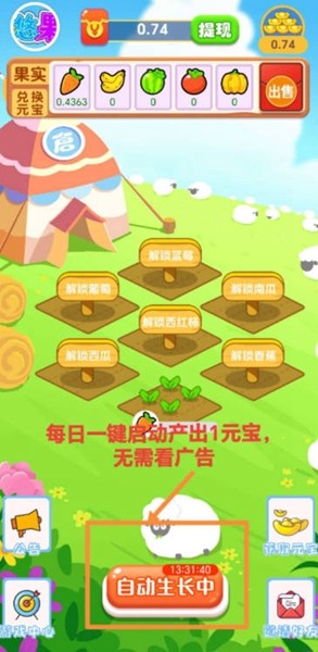 1、点击登录:首次进入游戏时,建议使用微信或手机号注册账号,这样可以确保游戏进度和奖励安全保存。登录后系统会自动发放新手礼包,包含基础果树种子和启动资金。