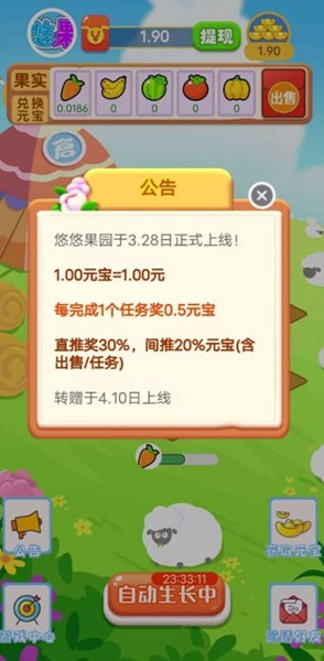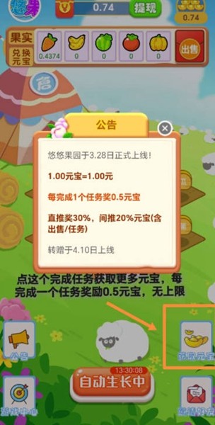 收获果实:每种果实的成熟时间各不相同,玩家需要合理安排种植计划。当果实成熟时,系统会通过推送通知提醒玩家及时收获。收获时除了获得基础红包外,还有几率触发暴击奖励,让收益翻倍。