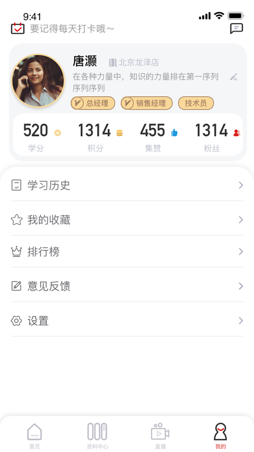 我的:关于你的一切,都精心保留在这里,包括学习记录、积分、个人信息等,方便用户随时查看和管理。
