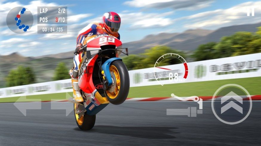 2.高性能摩托车:游戏收录30多款真实授权的摩托车,涵盖街车、跑车、越野车等多种类型,每款车都有独立的性能参数和驾驶特性,玩家需要通过比赛逐步解锁。