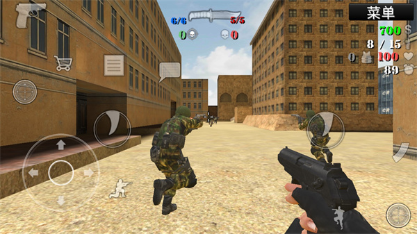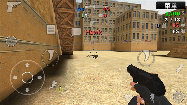 3、开始进入游戏,操作非常的简单,左边是方向和下蹲、购买等,右边则是攻击,其实两边都可以攻击,大家可以按照自己的喜好选择;建议先在设置中自定义按键布局,将常用的蹲伏、换弹等动作设置在顺手的位置,这将在激烈对战中带来显著优势。