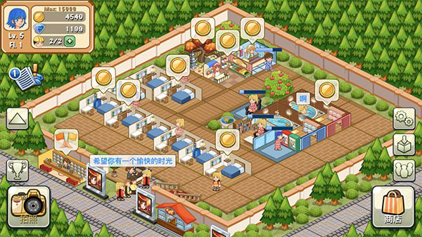 1、从房间的安排设置,到各种娱乐设施的调节,它都做到了尽善尽美。游戏提供了精细的经营管理系统,你可以调整每个设施的营业时间、定价策略,甚至亲自设计菜单。