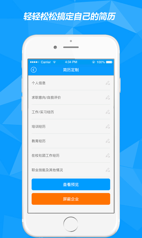 5.新手引导系统完善,即使是第一次制作简历的用户也能在10分钟内完成。