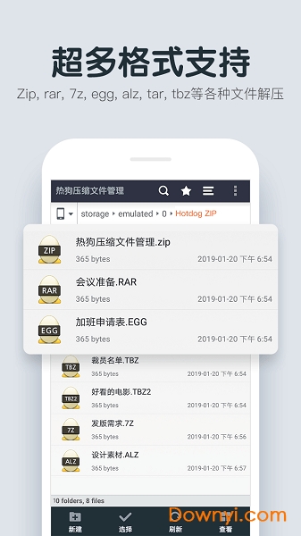 解压缩文件管理(原热狗压缩文件管理)是一款功能强大的手机文件管理工具,专为安卓用户设计。它不仅能够高效地压缩和解压各类文件,还集成了全面的文件管理功能,让您轻松整理手机中的文档、图片、视频等各类文件。支持包括ZIP、RAR、7Z在内的多种主流压缩格式,无论是工作文件打包还是游戏资源解压都能完美应对。其直观的操作界面和智能的拖放功能,让文件管理变得前所未有的简单,是提升手机办公效率的必备利器。
