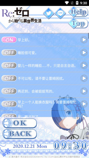 除了基础的闹钟功能外,应用还内置了丰富的收藏要素。用户可以通过日常使用解锁蕾姆的不同服装造型、特殊语音包以及限定壁纸等内容。这些收集要素不仅增加了长期使用的乐趣,也让每次互动都充满新鲜感。