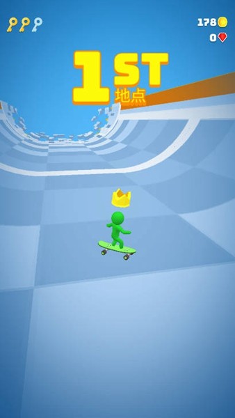 2、躲避障碍物然后获得更多的金币:游戏中的金币可用于购买新滑板和升级装备。建议新手先从简单赛道开始练习,重点掌握躲避障碍物的技巧。注意观察金币的分布规律,很多金币都放置在需要特定技巧才能到达的位置,比如在完成一个完美跳跃后才能获取。