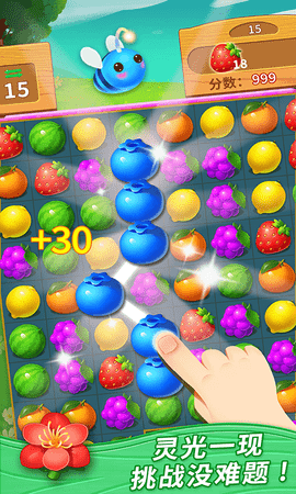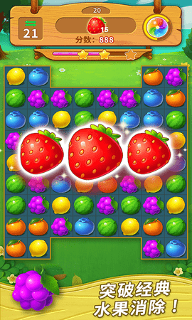 2、将相同的水果连在一起时,连接的水果数量越多,消除效果就越壮观。当您成功串联五个以上水果时,会触发华丽的连锁反应,整个屏幕都会绽放绚丽的特效,带来视觉上的极致享受。