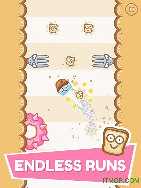 游戏中你就是个烤面包机,需要通过不断的弹跳去拿到面包,来通过关卡,整体画风偏萌,但玩起来还挺魔性,每关过后还有个升级的过程,让人想一直玩下去,这点要赞一个。
