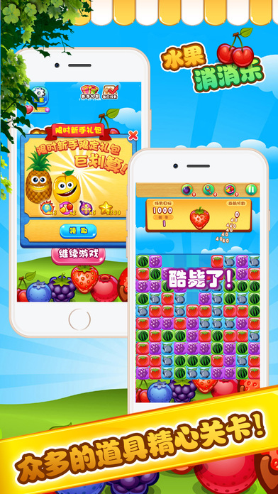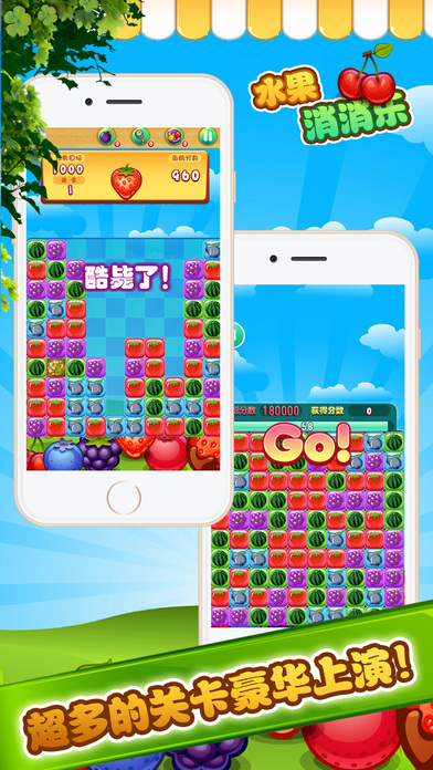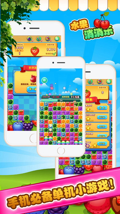 -游戏采用经典的消除玩法,玩家需要在限定步数内达到目标分数或收集指定数量的水果才能过关。随着关卡推进,目标要求会越来越高,挑战性十足。