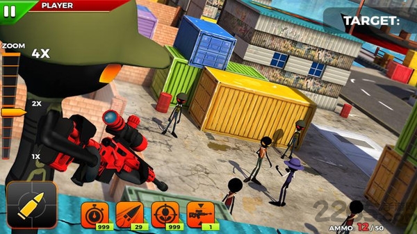 ·角色的非常简单,简单的火柴人角色,丰富的狙击任务。虽然角色设计简约,但每个火柴人都拥有独特的动作表现,让战斗过程充满动感。