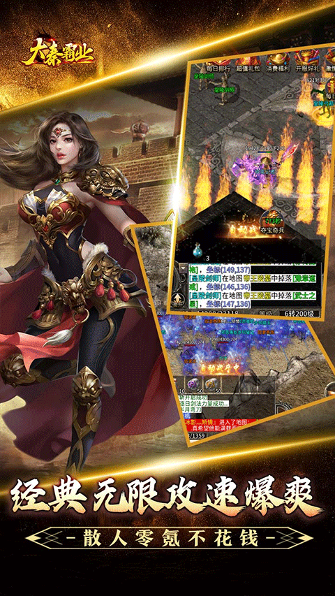 大秦霸业的游戏特色丰富多样,无论是新手玩家还是老玩家,都能找到适合自己的玩法。创角即享VIP级待遇,让玩家快速体验游戏的核心内容。疯狂扶持计划每日提供大量资源,助力玩家快速成长。二大陆全材料掉落,散人玩家也能轻松获取稀有资源。人人开局神兽白虎,战力飙升不是梦。自由养成宠物系统,玩家可以根据自己的喜好打造专属战斗流派。BOSS之家提供高阶装备免费爆,散人玩家也能穿神装。行会争霸与跨服攻城玩法,让玩家体验热血社交的乐趣。