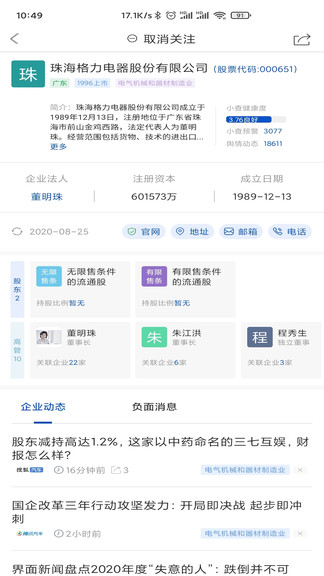 上查查用户可随时查询到上市企业高管的任职历史和最新职业动态,帮助用户第一时间了解上市企业关键人物的动态信息。无论是业务沟通还是情报掌握,上查查都能为用户提供主动权和决策依据。此外,系统还支持高管关联企业查询,帮助用户更全面地了解高管的职业背景和影响力。