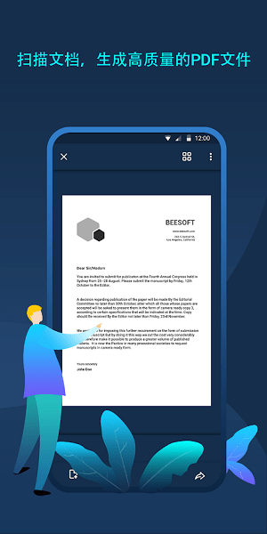 1.通过邮件和云服务快速分享文档,支持主流云存储平台如Dropbox、Google Drive等,实现跨设备无缝协作。2.扫描文档可生成高质量的PDF文件,保持原始文档的清晰度和排版格式。3.提供彩色、灰度、黑白三种专业扫描模式,满足不同文档类型的处理需求。4.内置智能OCR技术,支持多国语言识别,可提取扫描文档中的文字内容进行编辑。