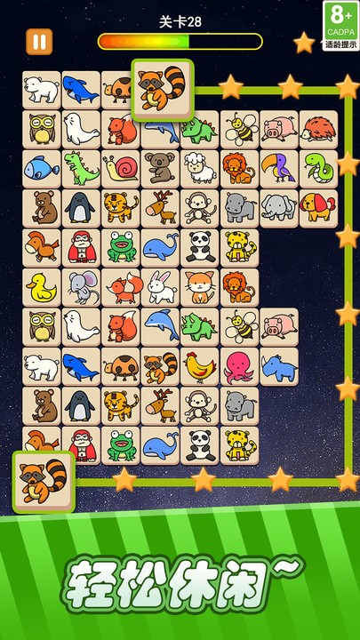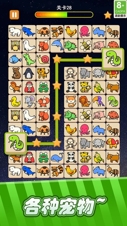 - 采用经典连连看玩法,匹配两个相同的动物即可消除。游戏规则简单易懂,但关卡设计巧妙,挑战性十足,让玩家在消除的过程中不断获得成就感。