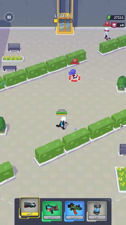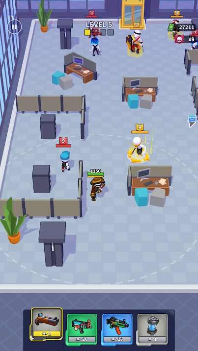 2、关卡设计充满策略性,每张地图会随机生成不同数量的敌人和障碍物组合。除了要注意正面交锋的敌人,还要小心隐藏在集装箱后或高处的狙击手,合理利用掩体是生存的关键。