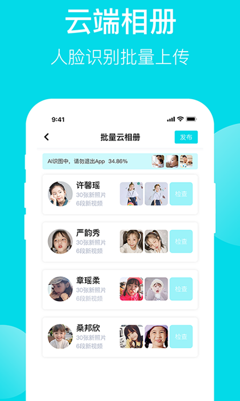 云端相册:采用智能分类算法,自动识别学生人脸并建立专属相册,支持高清原图存储与多端同步查看。